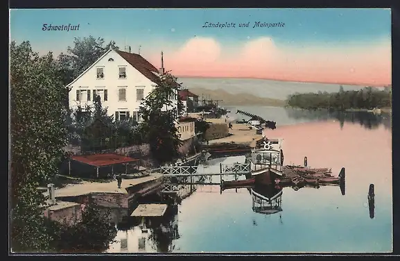 AK Schweinfurt a. M., Landeplatz und Mainpartie