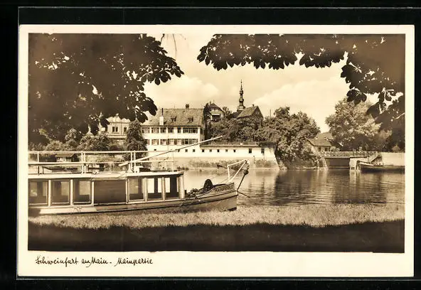 AK Schweinfurt am Main, Mainpartie mit Boot Mainperle