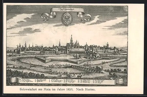 AK Schweinfurt am Main, Ortsansicht im Jahre 1650 nach Merian