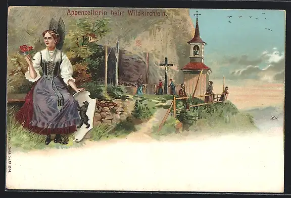 AK Schweiz, Appenzellerin beim Wildkirchlein