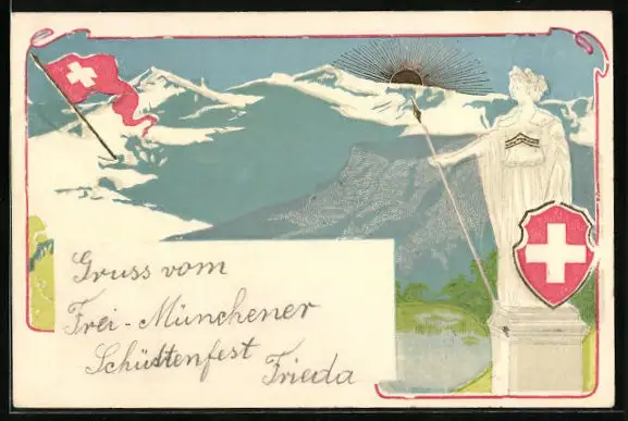 AK Schweiz, Berglandschaft mit Helvetia