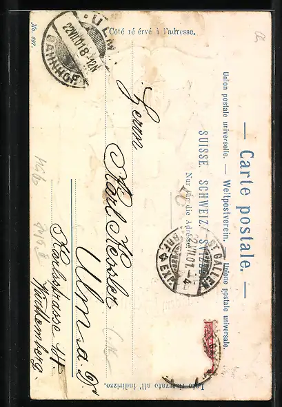 gelaufen 1901, Briefmarke entfernt, guter Zustand