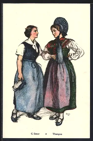 AK Schweiz, zwei Frauen in Trachten