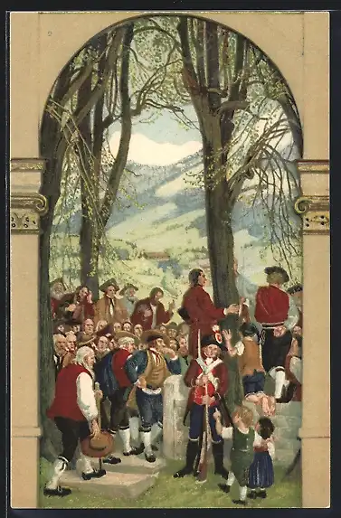 AK Schweizer Bundesfeier 1918, Bürger bei einer Volksversammlung
