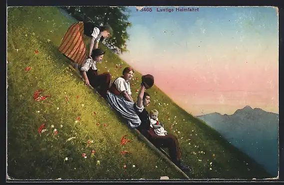 AK Schweizer Familie auf der lustigen Heimfahrt