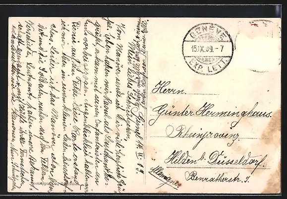 alte Ansichtskarte, gelaufen 1909, Briefmarke entfernt, rückseitig Oberflächenschaden, Eckknick rechts oben