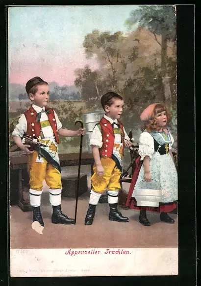 AK Schweizer Kinder in Appenzeller Trachten