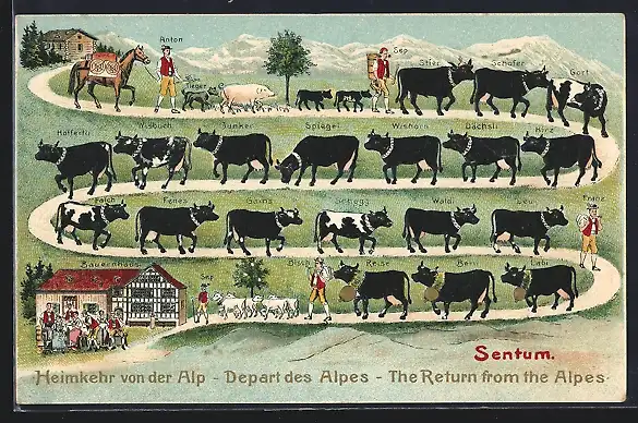 AK Schweizer Senner und ihr Vieh bei der Heimkehr von der Alp