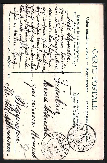 alte Ansichtskarte, gelaufen 1908, Bugspur re. oben, guter Zustand