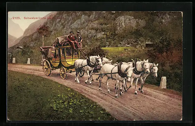 AK Schweizerische Gebirgspost, Postkutsche auf einem Bergweg