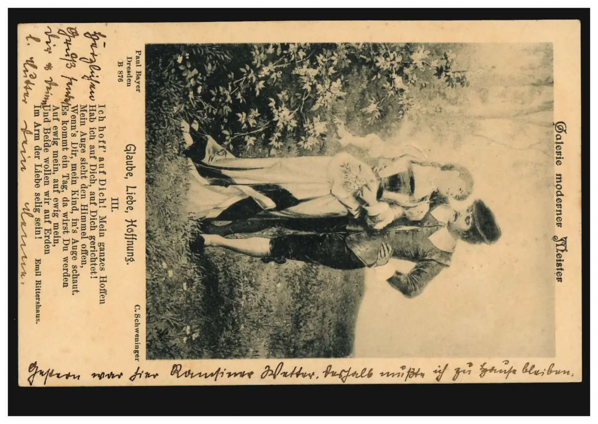 AK Schweninger: Glaube Liebe Hoffnung, BERLIN 18.1.1901 n. SANDERSDORF 19.11.01