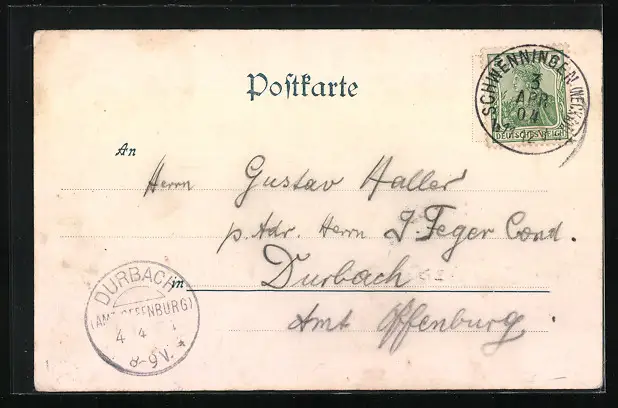 alte Ansichtskarte, gelaufen 1904, Eckknicke re. oben, rückseitig Oberflächenschaden, guter Zustand