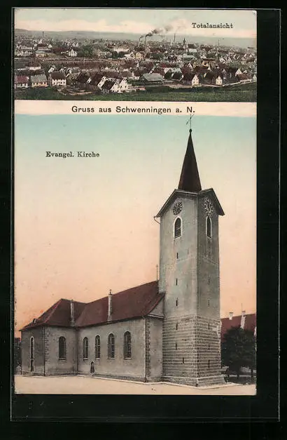 AK Schwenningen a. N., Totalansicht mit evangelischer Kirche