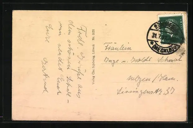 alte Ansichtskarte, gelaufen 1931, Stempelspur, guter Zustand