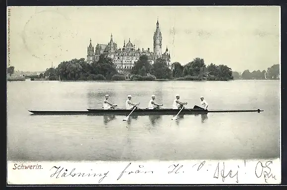AK Schwerin, Fünfer-Ruderboot bei der Passage des Schweriner Schlosses