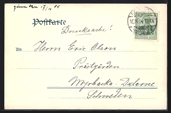 alte Ansichtskarte, gelaufen 1904, Bugspur oben mittig, guter Zustand