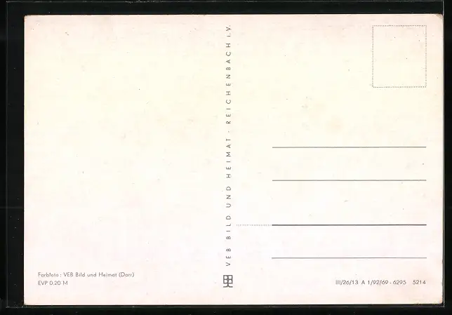 Personenbezogene Daten auf der Rückseite der Karte wurden durch blauen Textmarker unkenntlich gemacht. Die blauen Stellen sind auf die Vorderseite durchgeweicht und wirken sich negativ auf das Postkartenfoto aus