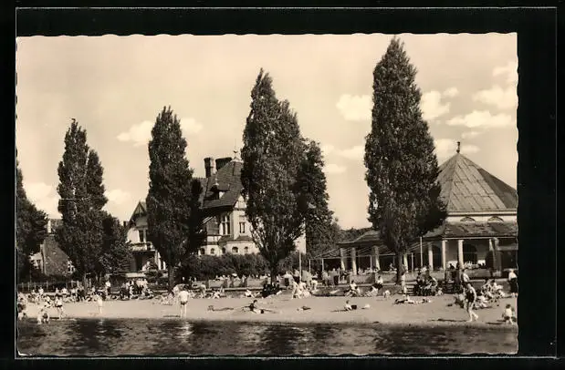 AK Schwerin-Zippendorf, Strand mit Gebäuden