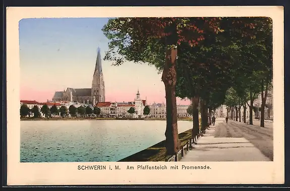 AK Schwerin i. M., Am Pfaffenteich mit Promenade