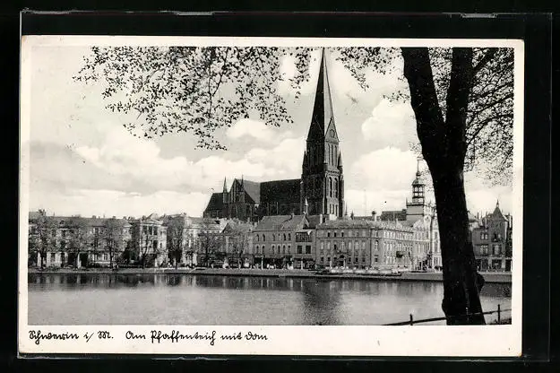 AK Schwerin i. M., Pfaffenteich mit Dom