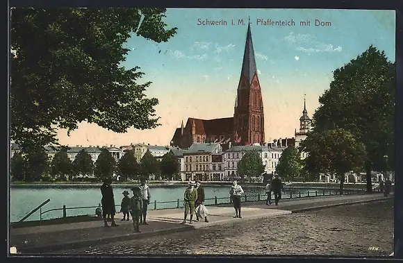 AK Schwerin i. M., Pfaffenteich mit Dom