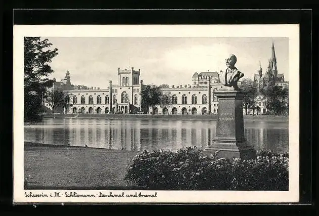AK Schwerin i. M., Schliemann-Denkmal und Arsenal