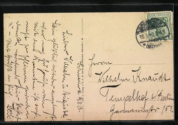 alte Ansichtskarte, gelaufen 1910, guter Zustand