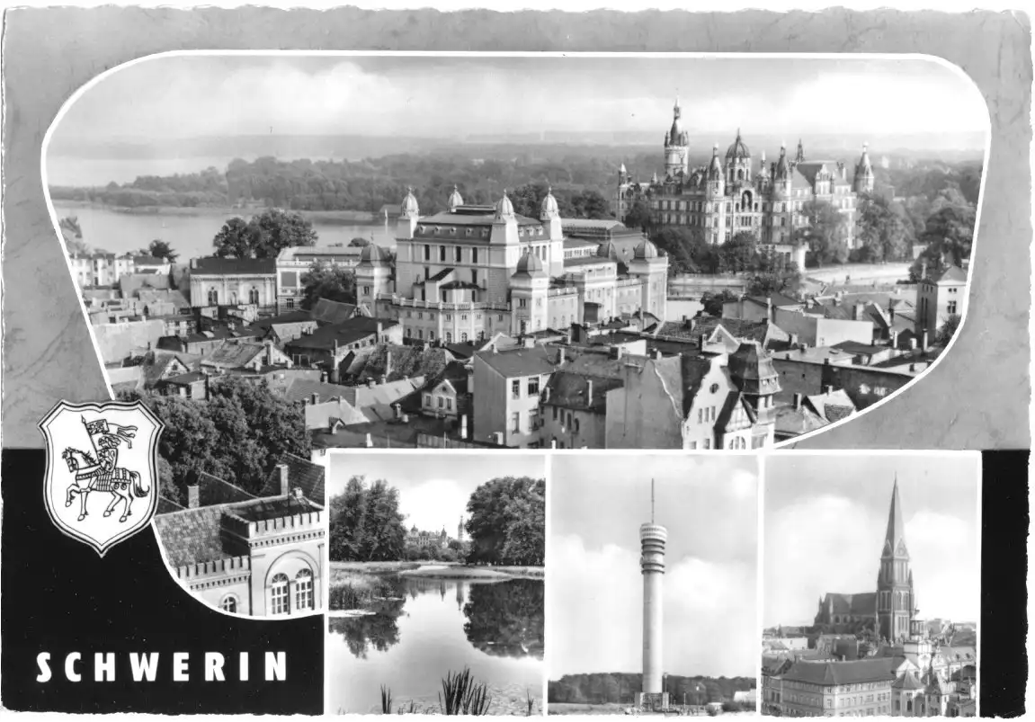 Ansichtskarte Schwerin vier Abb., gestaltet Erhaltung I-II postalisch gelaufen, ungestempelt Druckvermerk: 1966 Herstellungsland: DDR Verlag: Gebr. Garloff KG, Magdeburg - Z3006