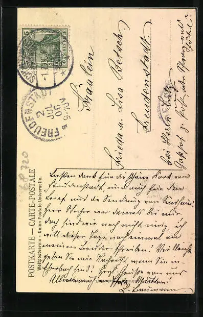 alte Ansichtskarte, gelaufen 1906, Stempelspur, guter Zustand