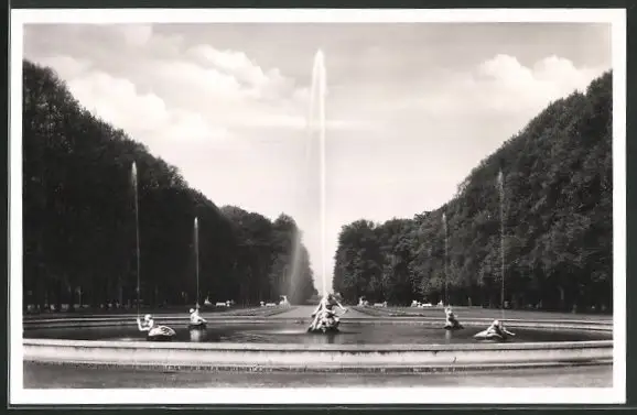 AK Schwetzingen, Schlossgarten Arion mit Springbrunnen