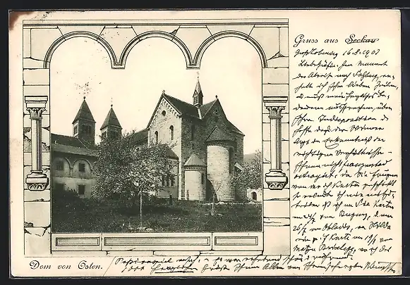 alte Ansichtskarte, gelaufen 1903, Eckknicke oben, kleiner Einriss oben re., guter Zustand