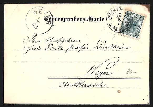 gelaufen 1903, Eckknicke oben, kleiner Einriss oben re., guter Zustand