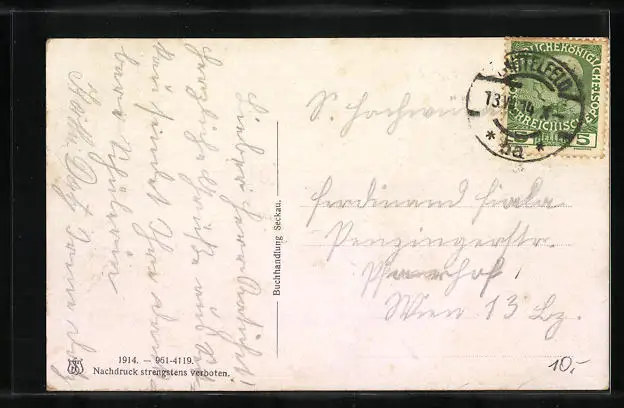 alte Ansichtskarte, gelaufen 1914, Stempelspur, guter Zustand