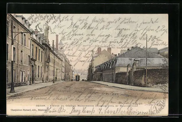 AK Sedan, Avenue du General Margueritte, Strassenbahn