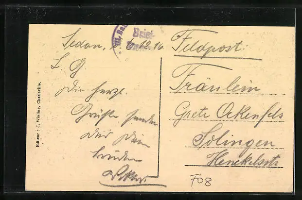 gelaufen 1916 als Feldpost, Stempelspur, guter Zustand