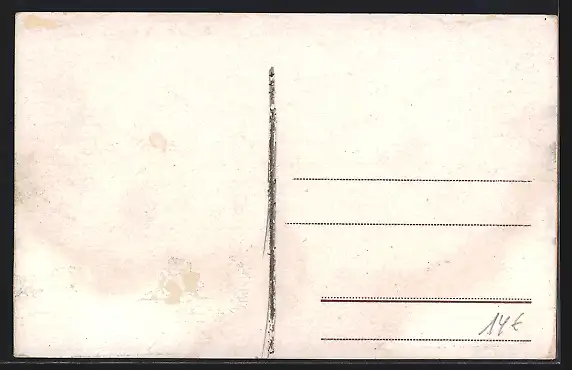 alte Ansichtskarte, ungelaufen, Abriebspuren Ecken, rückseitig Klebe- und Papierreste, rückseitig Oberflächenschaden, guter Zustand