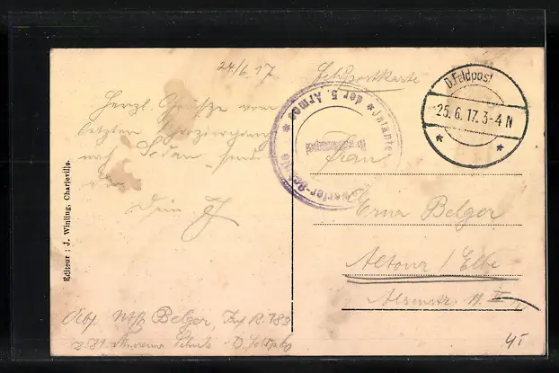 gelaufen 1917 als Feldpost, guter Zustand