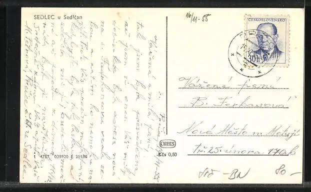 AK Sedlec u Sedlcan, Dorf im Sonnenschein