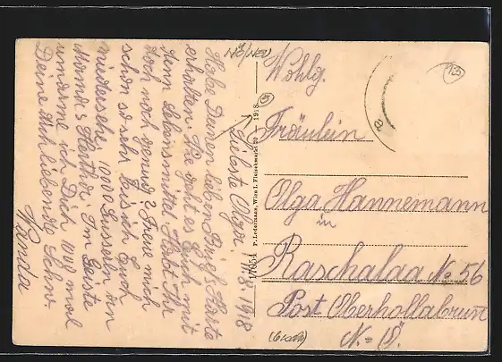 alte Ansichtskarte, gelaufen, Briefmarke entfernt, guter Zustand