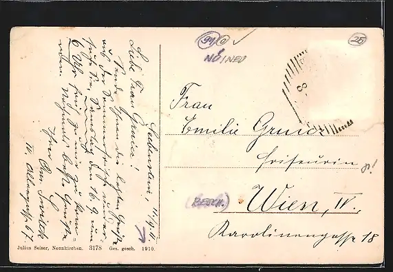 alte Ansichtskarte, gelaufen 1911, Briefmarke entfernt, rückseitig Oberflächenschaden, guter Zustand