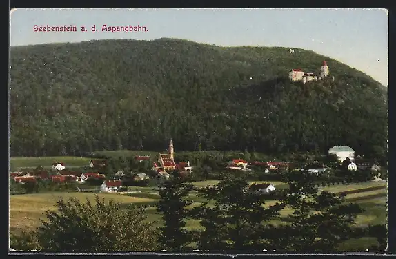AK Seebenstein a. d. Aspangbahn, Ortsansicht mit der Burg auf dem Berg