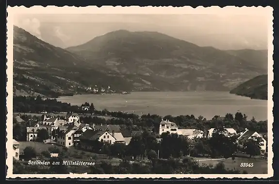 AK Seeboden am Millstättersee, Teilansicht mit Bergen