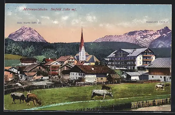 AK Seefeld / Karwendelbahn, Totalansicht mit Hohe Munde und Wetterstein