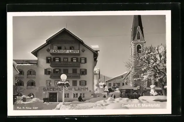 AK Seefeld i. T., Gasthof zum Lamm am Marktplatz