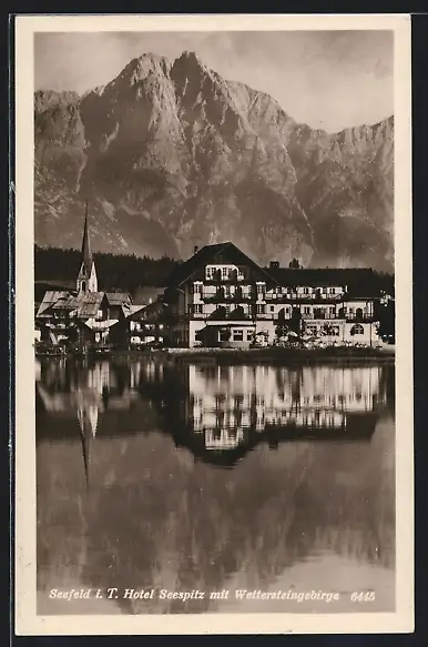 AK Seefeld i. T., Hotel Seespitz mit Wettersteingebirge