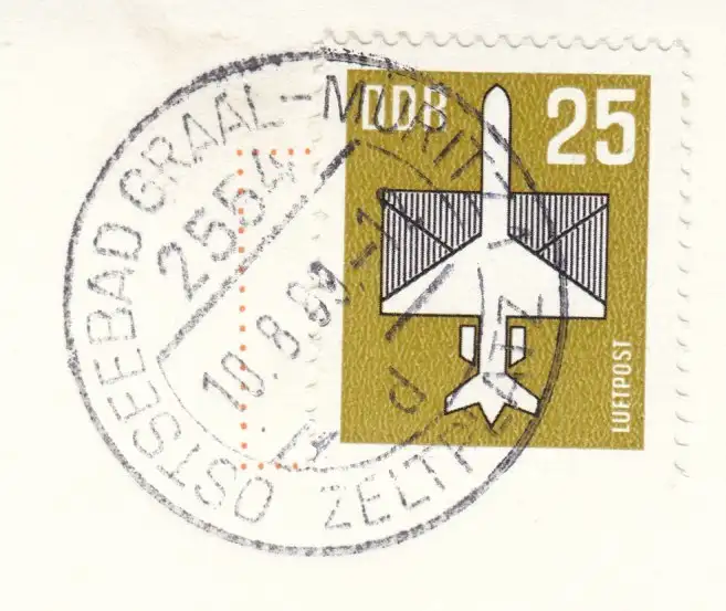 postalisch gelaufen, gestempelt: Ostseebad Graal-Müritz Zeltplatz, 10.8.89