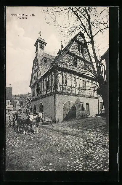 AK Seeheim a. d. B., Rathaus mit Ochsenwagen