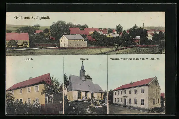 AK Seeligstadt, Totalansicht mit Schule und Kirche