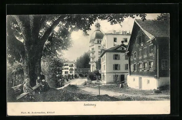 AK Seelisberg, Ortspartie, Mutter mit Kindern auf einer Bank