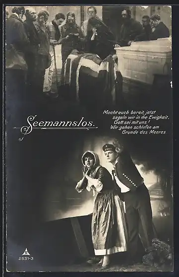 AK Seemannslos, Matrose blickt mit seiner Liebsten aufs Meer, Bestattungsritual